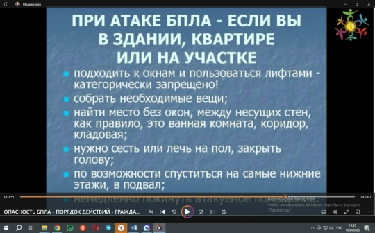 Обучающиеся говорили о том, как правильно действовать мирному населению при угрозе или атаке беспилотников. Были разобраны реальные ситуации, даны практические советы по сохранению жизни и здоровья, а также продемонстрированы средства оповещения и укрытия. Вторая часть беседы была посвящена вопросам поддержки военнослужащих и их семей