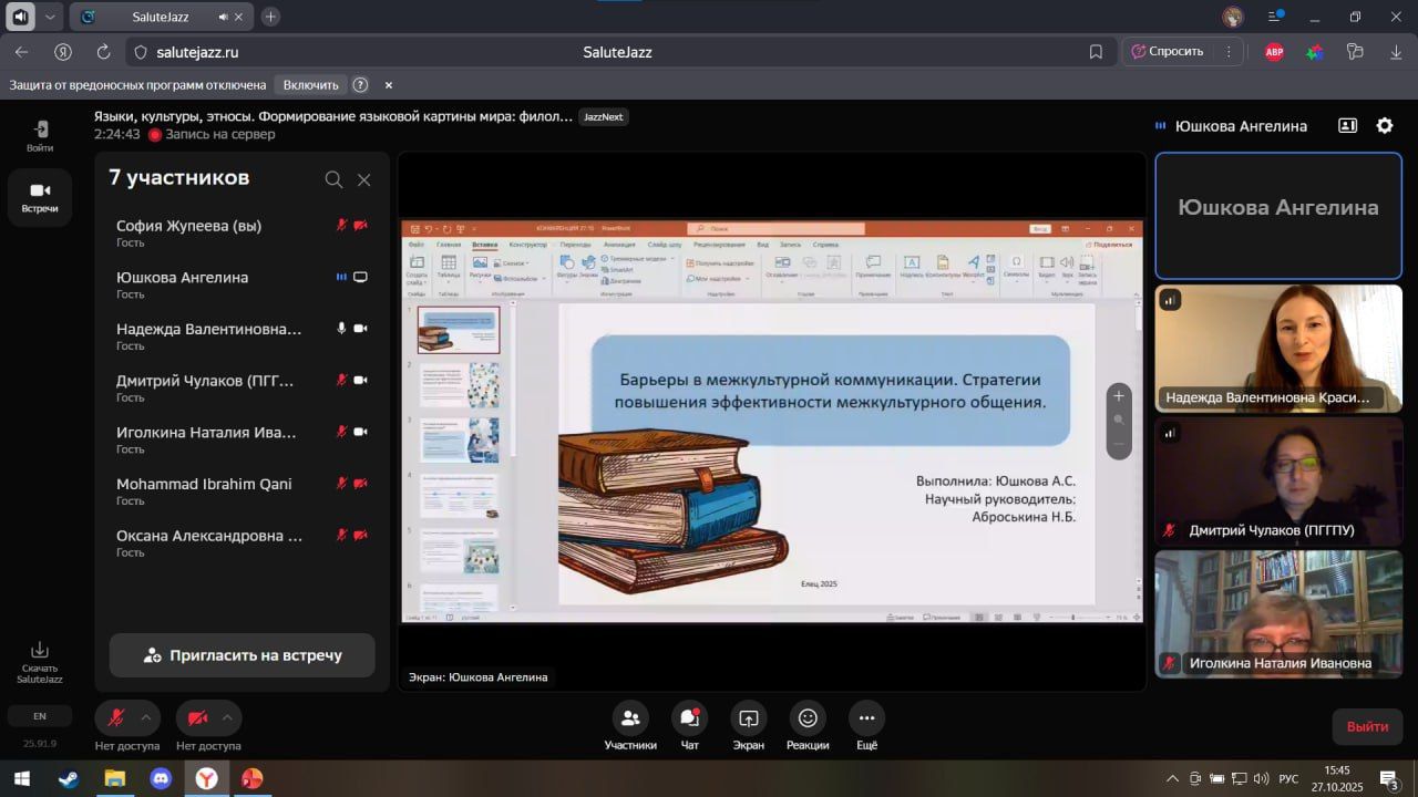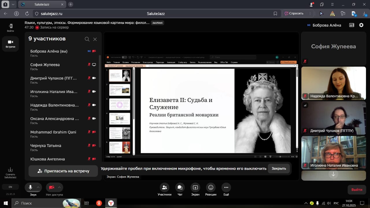 Студенты и преподаватели института филологии и межкультурной коммуникации приняли участие XVII Международной научно-практической конференции «Языки, культуры, этносы. Формирование языковой картины мира: филологический и методический аспекты», проводимой при поддержке Марийского научно-исследовательского института языка, литературы и истории им. В.М. Васильева и Университета науки и технологий МИСИС. Конференция прошла в рамках форума "Языки. Культуры. Этносы" 27.10-31.10.2025 (ФГБОУ ВО «Марийский государственный университет»).