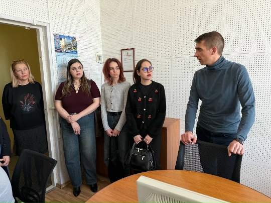 12 марта обучающиеся группы Ж-41 под руководством к.ф.н., доцента кафедры русской филологии и журналистики М.С. Штейман посетили МБУ «ЕТРК». Директор телерадиокомпании С.В. Зуев провел для будущих журналистов мастер-класс. Студенты ознакомились с историей возникновения и развития телерадиокомпании, особенностями работы редакции, функциями технического оборудования, задали сотрудникам вопросы и получили компетентные ответы.