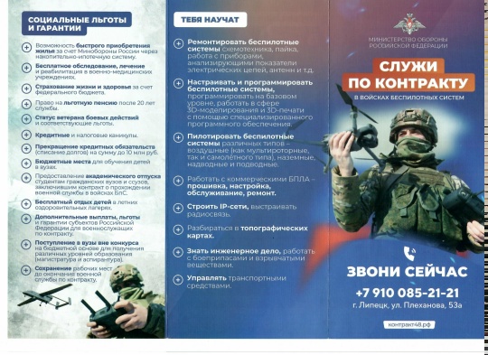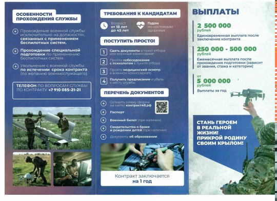 Вся необходимая информация для подачи заявки и прохождения службы доступна в прикреплённых листовках. Не упустите шанс стать частью будущего — присоединяйтесь к передовым подразделениям уже сегодня!