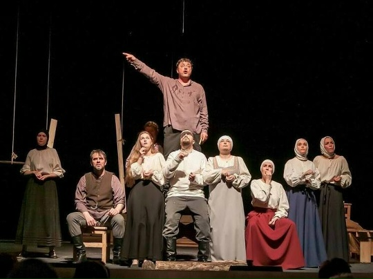 20 февраля студенты ИФиМК посетили спектакль "Деревня" в театре Бенефис. Этот спектакль вырос из эскиза театральной лаборатории «Бунин.Елец.Апрель», которая состоялась в «Бенефисе». Спектакля по данному произведению нет ни в одном театре мира! Режиссер В. Кузнецов смог передать сюжет повести в захватывающей форме для зрителей. Особый тон всему спектаклю задает живое хоровое пение вокального ансамбля «Нонмарт» (рук. Марина Григорьева).